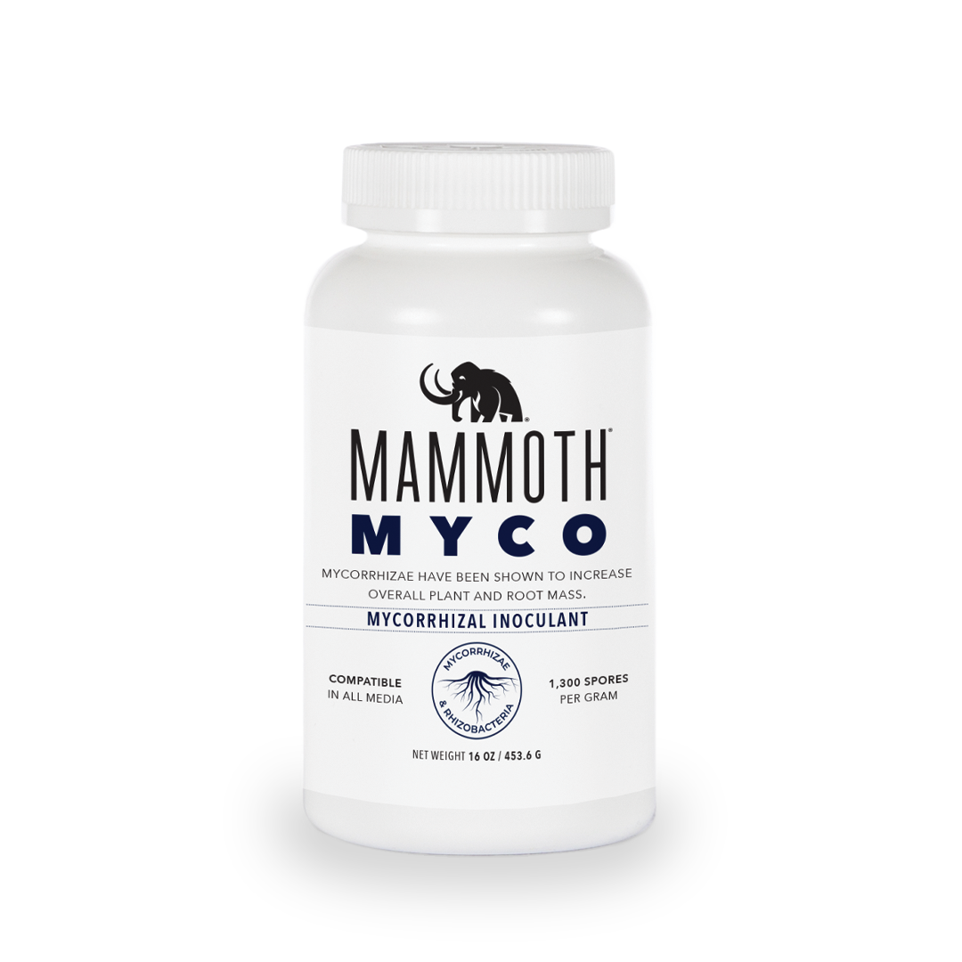 Mammoth Myco is a team of beneficial endomycorrhizal fungi and rhizobacteria. Mammoth Myco promotes increased root development and proliferation, enhanced nutrient and water uptake, and an increase in overall plant mass. Use as an amendment in all growing media and methods when propagating or transplanting.